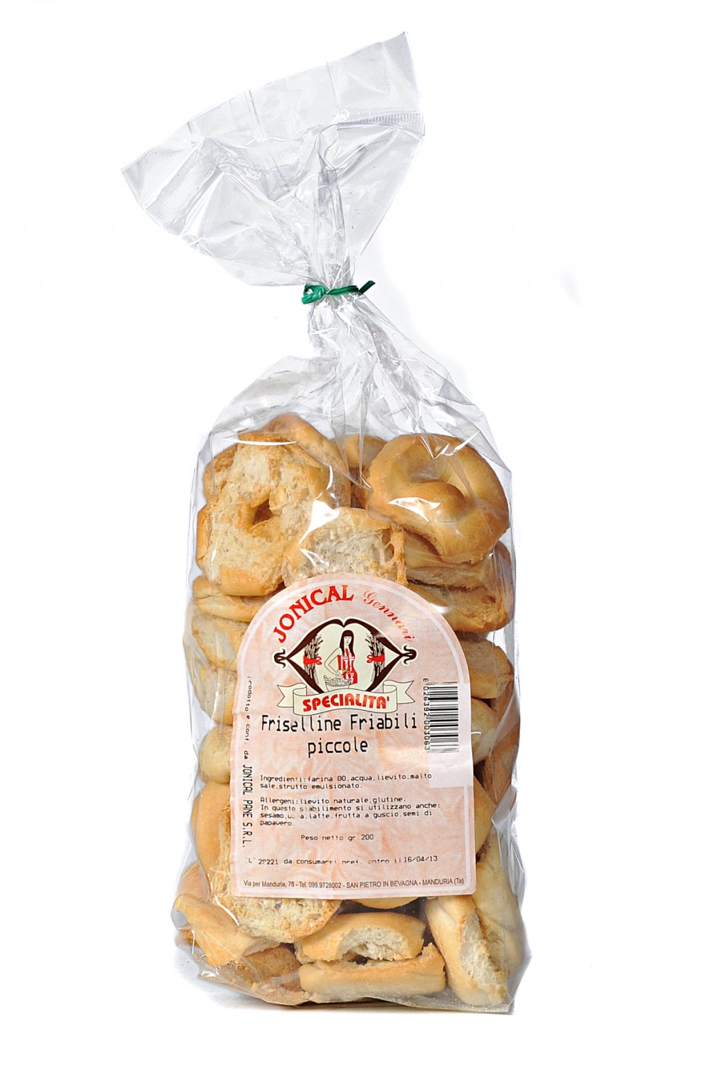 Eine köstliche knabberei, die man trocken verzehrt. Diese frisella (Frifri), empielt sich mit gutem kaltgepresstem Olivenöl extravergine, Salz, Oregano oder mit frischern Tomaten und mit in Würfeln oder in streifen geschnittener frischer Mpzzarella, sehr gut geeignet für's kaltes Buffet oder für einen Aperitiv, mit Thunfisch und würzigen Sossen.
