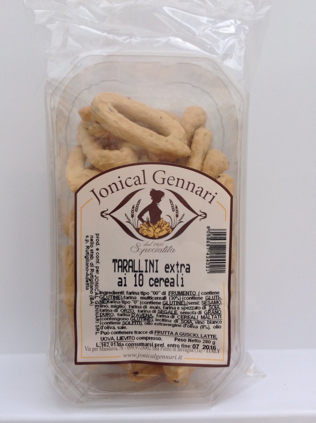 Weiche Weizenmehl Type "00" (gluten), MehrKornbrot Mehl (Gluten) 24 % Weizenmehl Type "0" (Gluten) mit Sesam Leinsamen, Sesam, Sojamehl, Mehl und zerbrochen Gerstemehl (Gluten),Roggenmehl (Gluten), Durum-Weizen (Gluten), Hafermehl (Gluten), Malted Getreidemehl (Gluten), Mix (Sojalecithin), Weißwein, Olivenöl (8 %), Olivenöl hohe Ölsäure Sonnenblumenöl, Salz, gemahlener Durum-Weizen (Gluten) BIO (0,6 %)