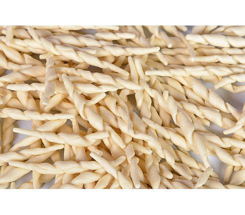 Ausgewählte Zutaten,reines Weichweizen Mehl machen diese Nudeln so bekömmlich. Hinzu kommt die Produktionsweise: in Handarbeit hergestellt und anscliessend werden sie zur langsamen Trocknung für etwa 16 - 20 Std. auf mit Leinen bezogene Oberfläche ausgebreitet, Sodas die Nährwerte möglichst unverändert bleiben