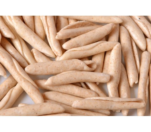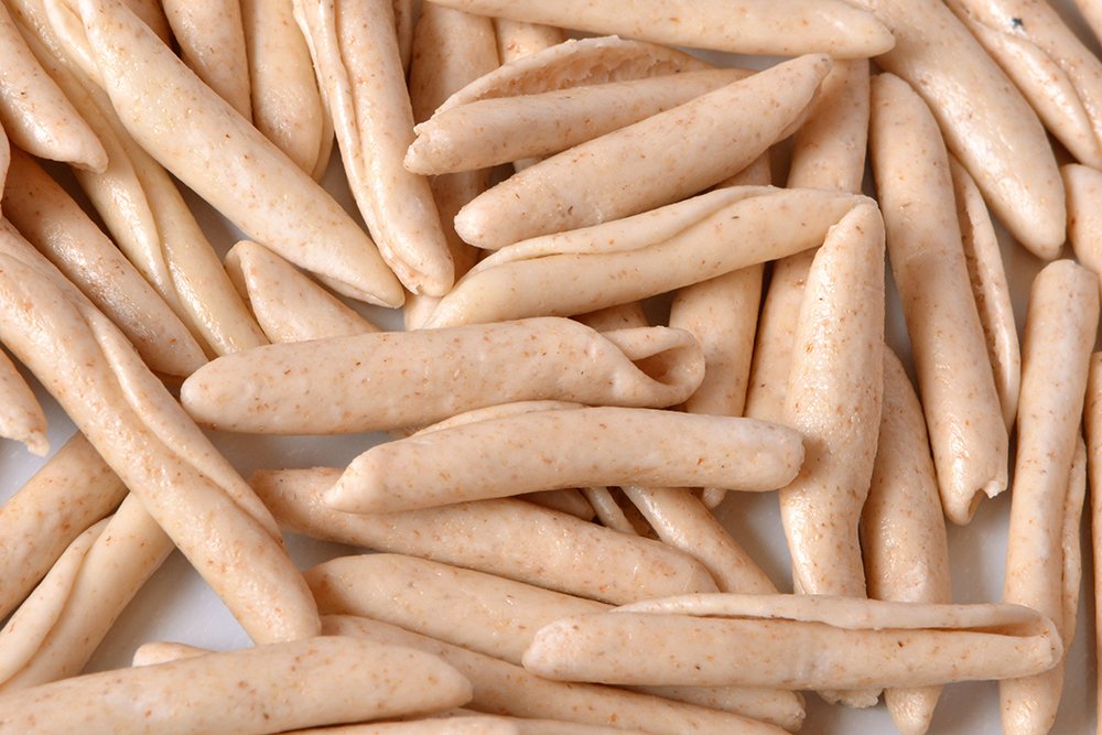 Materie prime di qualità, composte esclusivamente con GRANI DURI selezionati,una lavorazione artigianale e caratterizzata dalla formatura della sfoglia mediante TRAFILE in bronzo e sapiente cilindratura sono il segreto per ottenere una superficie RUVIDA e dello spessore voluto.