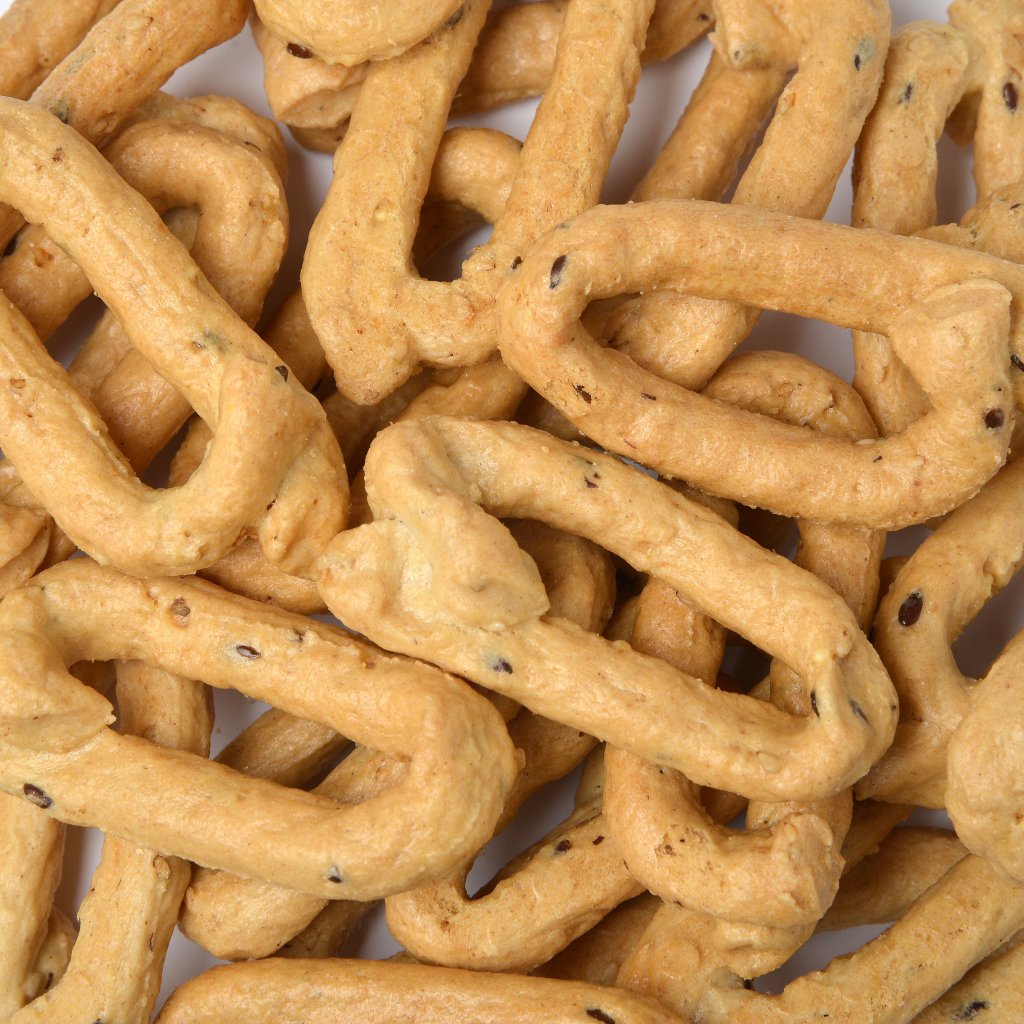 Soft wheat flour type "00" (gluten) flour, Multigrain (gluten) 24% wheat flour type "0" (gluten) with sesame seeds, flax seed, millet, cornmeal, soy flour and broken, barley flour (gluten), rye flour (gluten), durum wheat (gluten), oat flour (gluten),malted cereal flour (gluten), mix (soya lecithin), white wine, olive oil (8%), olive oil high oleic sunflower oil, salt, ground durum wheat (gluten) BIO (0.6%)