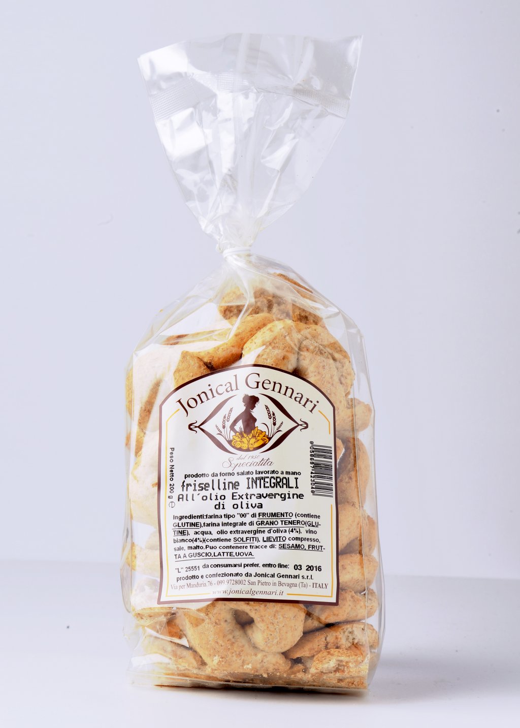 Handmade and produced with antique and typical approach. After an halfway bakingprocesse , the " Friselle" get horinzontally cut throug, and baked a second time.