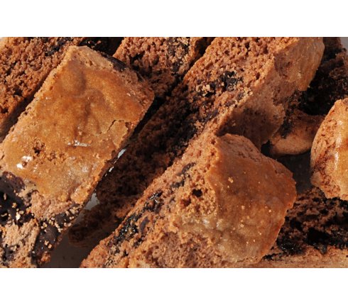 Farina tipo "0", zucchero, cioccolato fondente ( minimo 9% ), pasta di cacao, fragole naturali ( minimo 8%), (fragole, zucchero, acqua, alcol residuo, acido critico), latte, uova fresche, olio d'oliva, vino primitivo nell'uvetta (3% del totale ricetta), burro, margarina vegetale, (oli e grassi vegetali, acqua, emulsionante, lecitina di girasole, sale, aromi naturali succo di limone), bicarbonato di ammonio, agente lievitante (carbonato acido di sodio, carbonato acido di sodio, pirofosfato acido di sodio), cacao, vanillina.