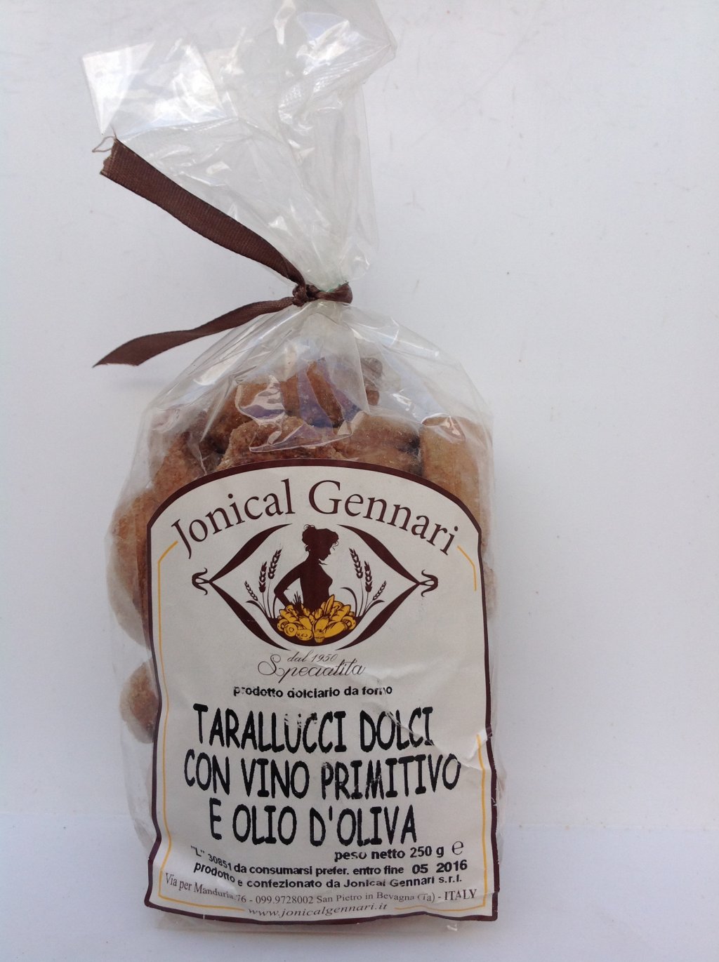 Senza grassi idrogenati, senza coloranti, senza aromi e senza conservanti. Proprietà benefiche del vino primitivo, "consumato tal quale", risulta un ottimo antiossidante, grazie alla sua capacità di combattere i radicali liberi e questo comporta anche un rallentamento dell’invecchiamento, inoltre il vino rosso ha proprietà, "consumato tal quale", grazie anche alla sua capacità di abbassare la pressione arteriosa dovuto ai vari elementi presenti nella bevanda, vi sono inoltre le proprietà antinfiammatorie e di prevenzione dell'arteriosclerosi (tutto ciò perché il vino primitivo e ricco di polifenoli oltre a contenere calcio, sodio, fosforo, potassio, zinco, fluoro, magnesio e vitamine: A, B1, B2, B3, B4, B6, K, J).Proprietà benefiche dell'olio d'oliva, "consumato tal quale", capacità antinfiammatorie, proprietà antiossidanti, normalizza il metabolismo, rallenta il declino delle funzioni cognitive nella demenza senile